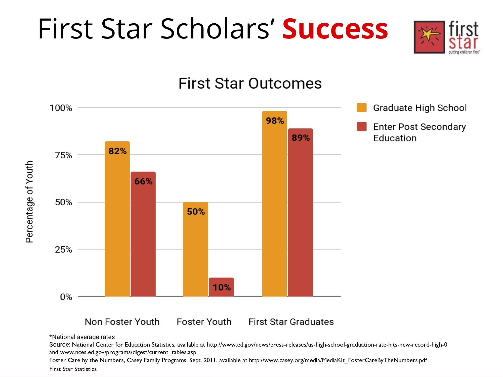 First Star was founded in 1999 by Peter Samuelson and Sherry Quirk, as a national 501(c)(3) public charity dedicated to improving life for child victims of abuse and neglect.